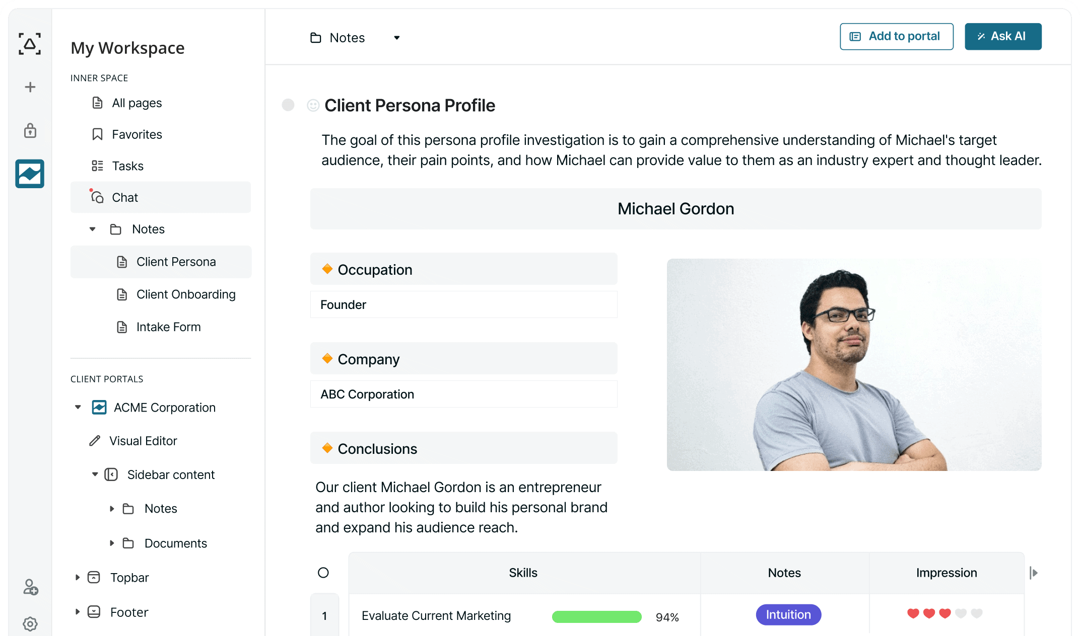 “I use FuseBase to organize projects for agency. It works as a portal for my team and clients. For each client and project, we create a workspace and I invite the team members that will work in that specific project / client”.