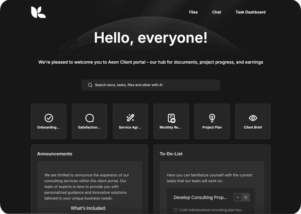 Notion is a productivity software that combines note-taking, databases, and task management into one platform. Its flexibility allows businesses to create customized client areas, making it suitable for teams that require tailored collaboration spaces.