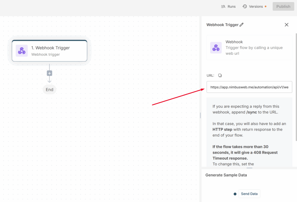 - If you expect a reply from the webhook, append /sync to the URL.
