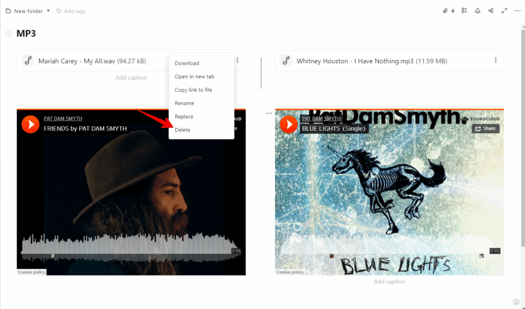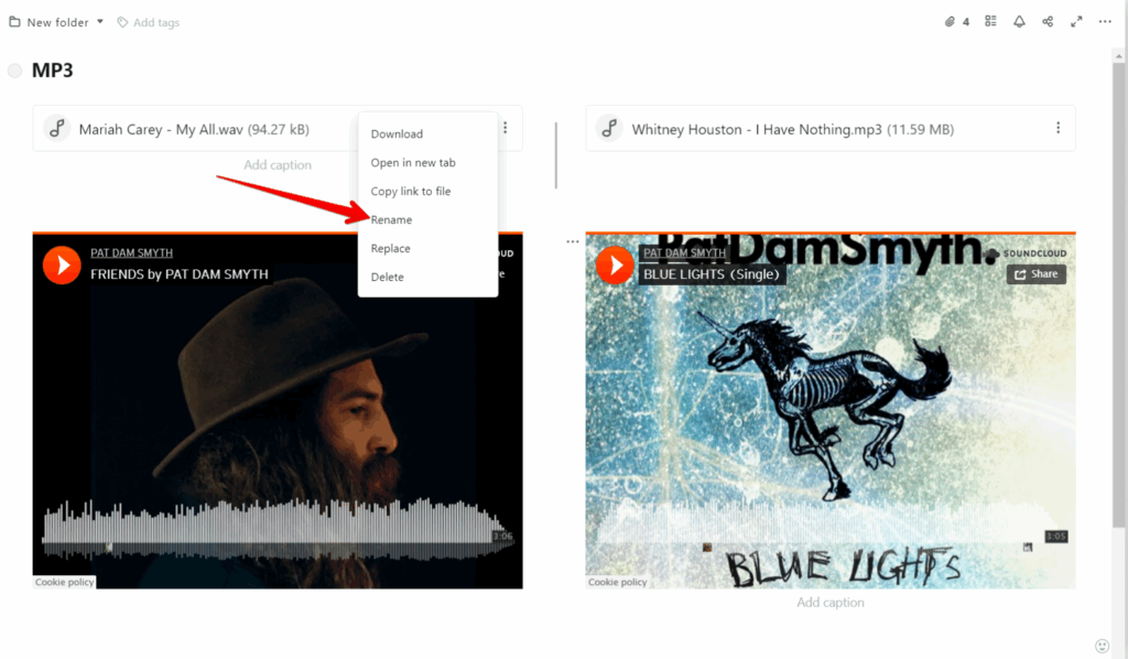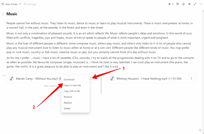 ☝ Play all audio files directly in the page with our built-in audio player! It supports MP3, M4A, CAF, AMR, and other popular formats. Check it out in the web client or desktop versions (Windows and Mac)!
