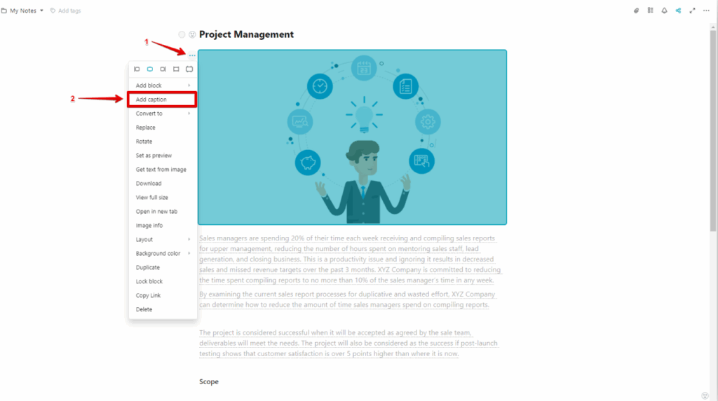 FuseBase allows you to add pictures with various extensions (jpg, gif, png, etc.) to your page. You can also add files directly into tables, resize & move pictures, copy text from images and much more.