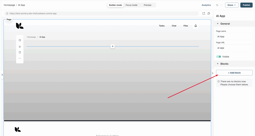 1) To get started, go to the desired portal page in the customizer and click Add block.