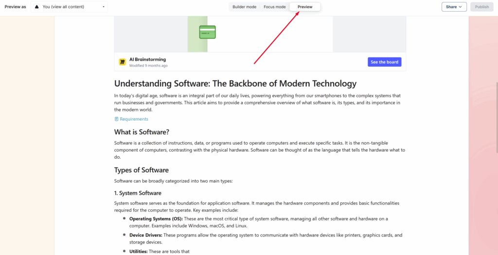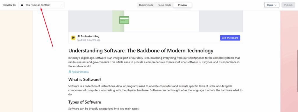 If you’ve restricted access to specific areas, you’ll probably want to view the portal from the client’s perspective. To do this, go to “Preview” mode.