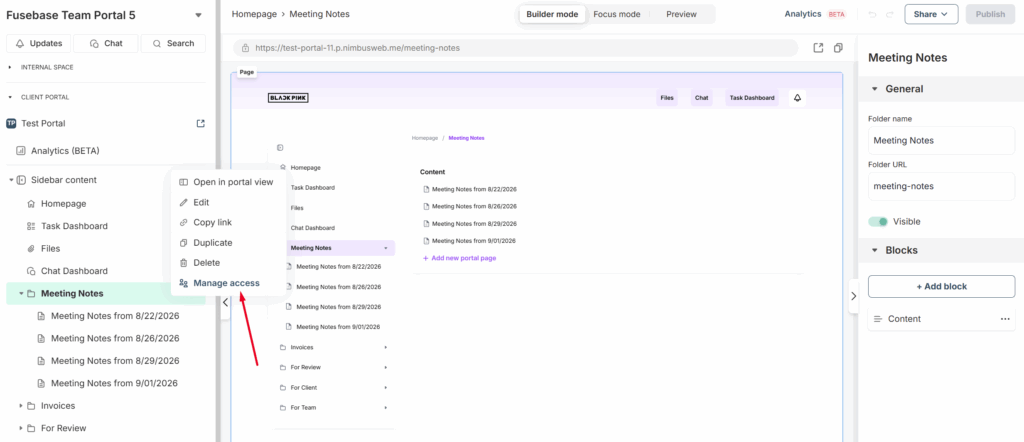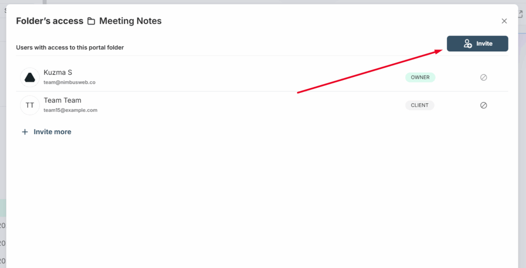 You can grant a client access not to the entire portal, but to specific folders. To do this, click on the menu of the desired folder and select Manage access.