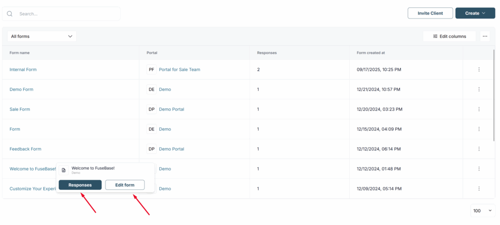 As you know, in Fusebase portals you can create forms, and your clients can fill them out. But what if there are many portals, many forms, and also many clients? Opening each portal and checking the responses separately is very inconvenient. And it is precisely for such cases that we have added to our CRM the ability to aggregate all form responses in one place.