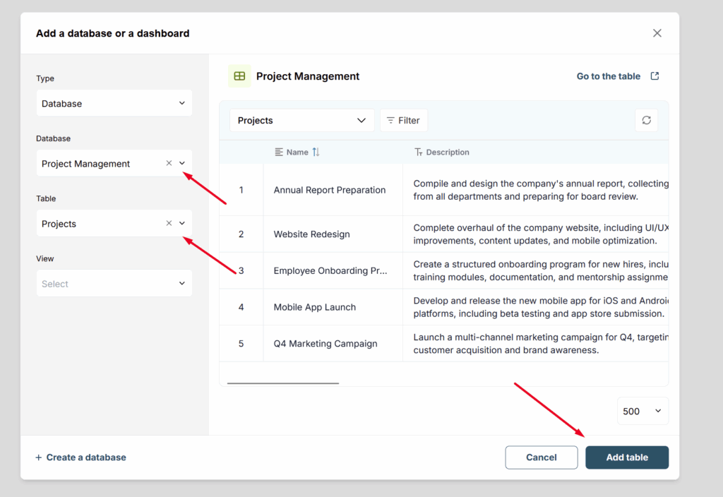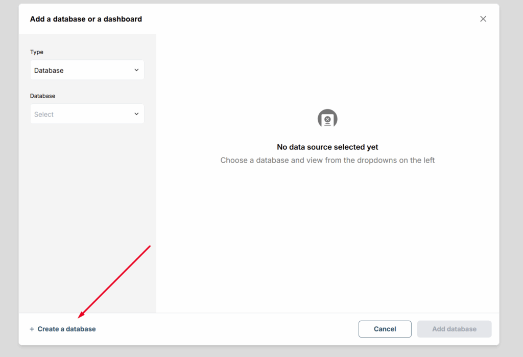 3) Next, you can create a new database or choose from existing ones. You can select an entire database, individual tables, or even a specific view.