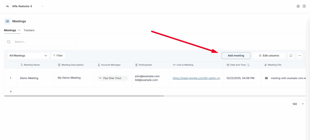 It is important to note that you can edit any meeting details. Simply open the detailed view of the meeting or click on the relevant field, and then update the information as needed.