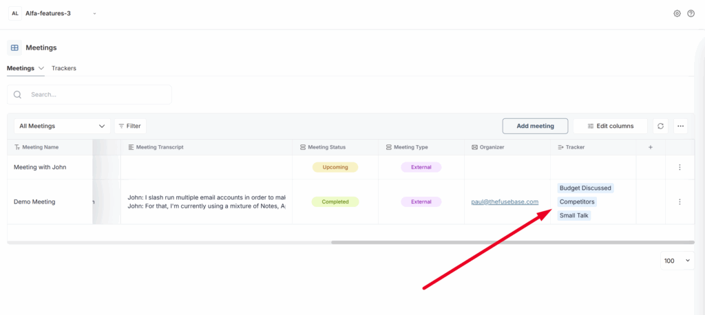 Tracker – here you will see the trackers that were triggered during this meeting. You can find more information about trackers here.