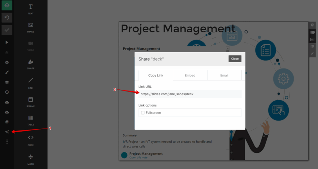 With Slides.com, you can create a presentation with FuseBase public pages.