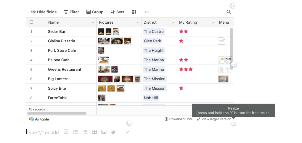 - Open the desired table at https://airtable.com.