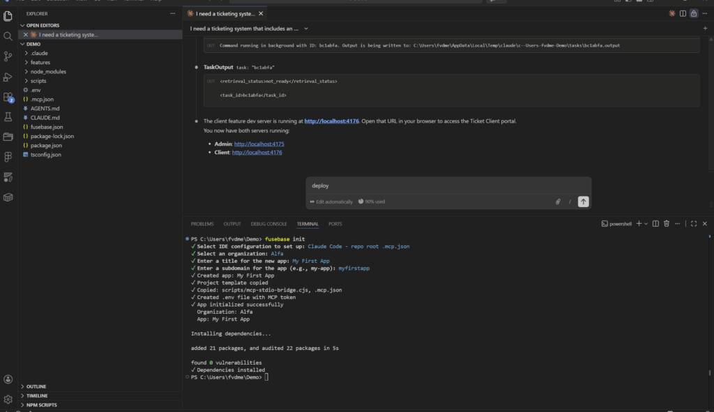 If you are satisfied with the results, you can submit the feature and its changes to Fusebase. To do this, simply type deploy or publish in the chat.