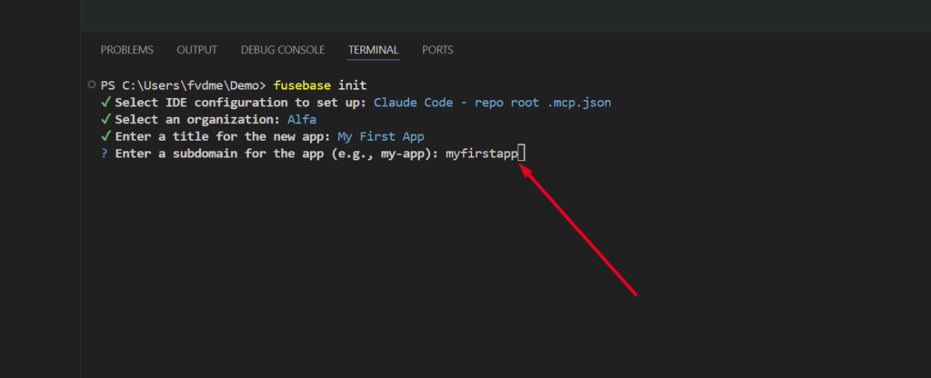 2) In the terminal, enter fusebase init. First, you will need to log in to Fusebase. A browser window will open automatically for authorization. You will only need to authorize once.