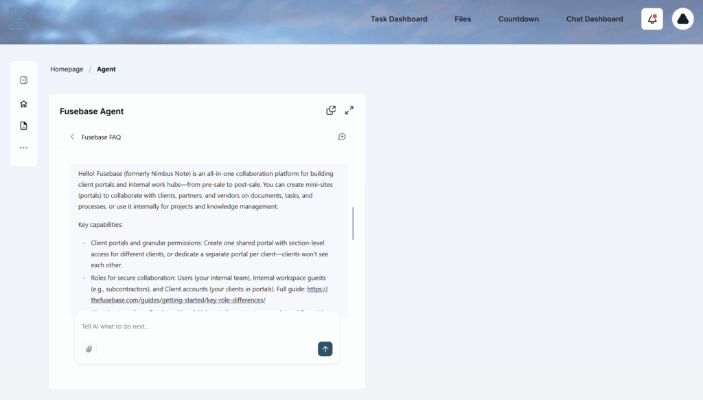 Our AI agents can perform a wide range of tasks: from complex research and automations to assisting in customer support. You can use agents not only for team work or in portals, but also integrate them into your website or application.