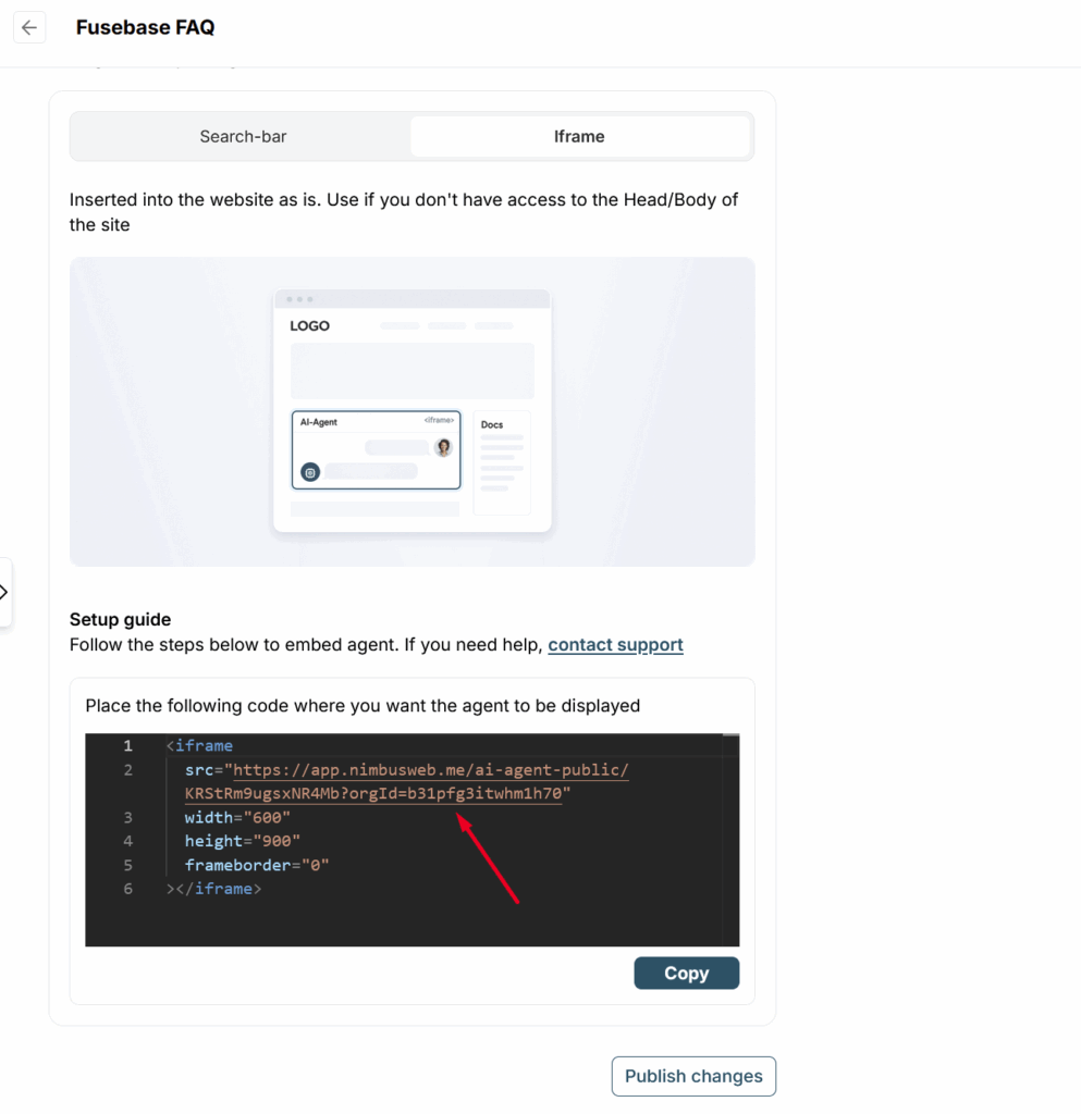 You will also find a direct link to your agent in the Iframe code. This will allow you to share the agent directly with other users.