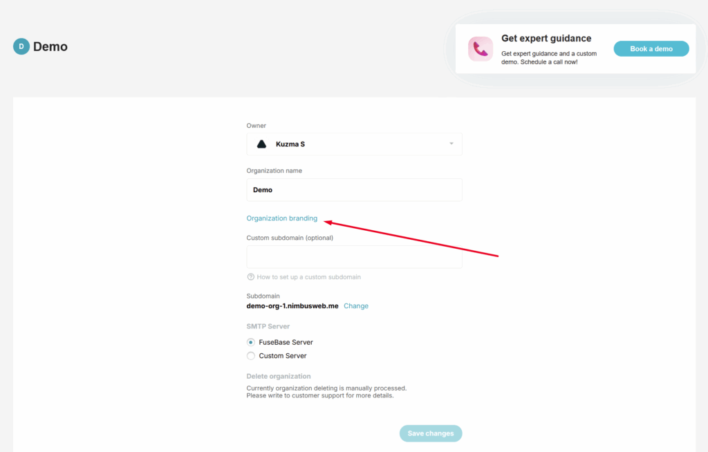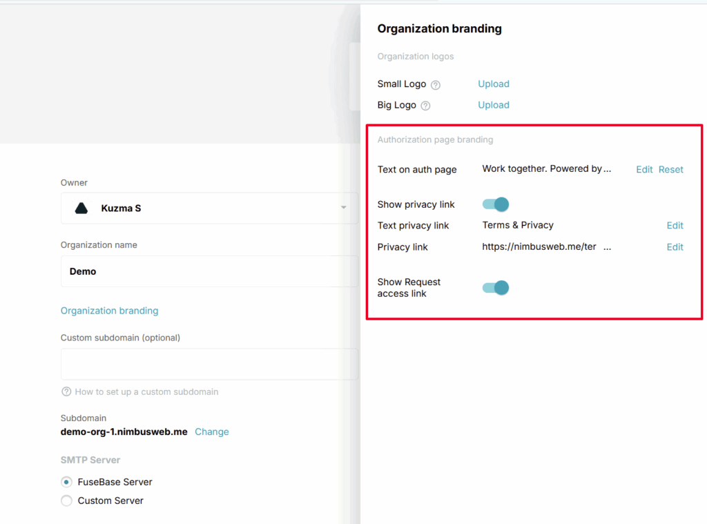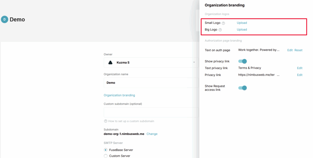 In the future, you can change the logo using the Upload button. Also, you can return the default FuseBase logo by clicking Reset.