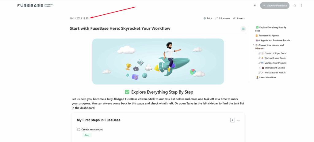 - Each page has a creation date. By default, it is not shown, but you can enable it if needed.