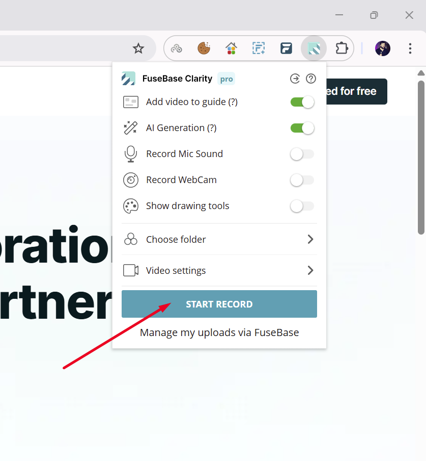 2) In FuseBase Clarity, click the our icon: