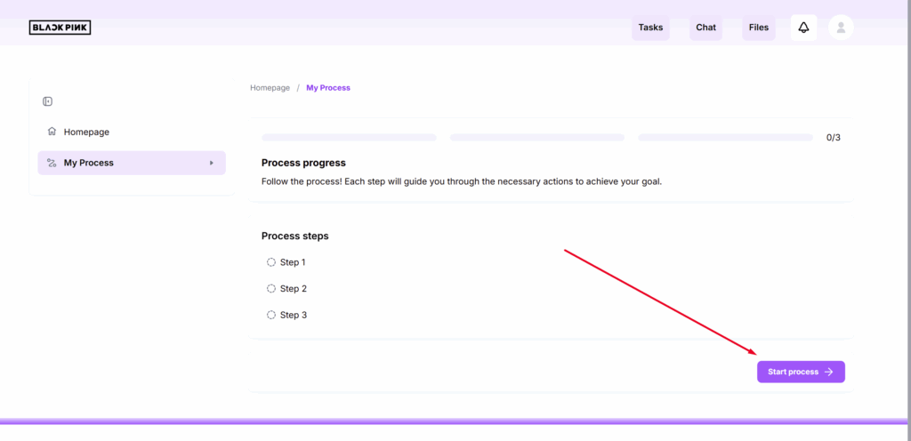 To begin the process, the client needs to click on Start Process (button names may vary depending on your settings).